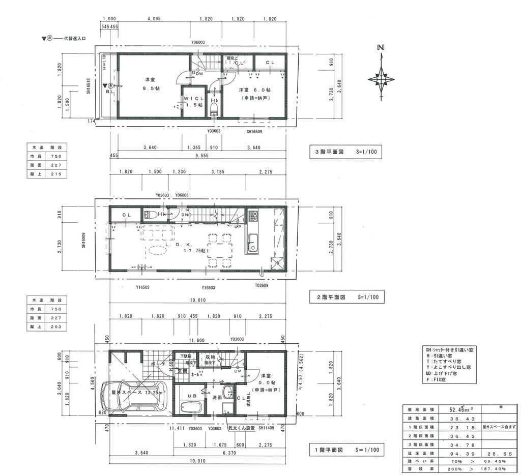 | 面積 | 94.39m² 土地 52.46m² | 建蔽率/容積率 | 60% / 200% |